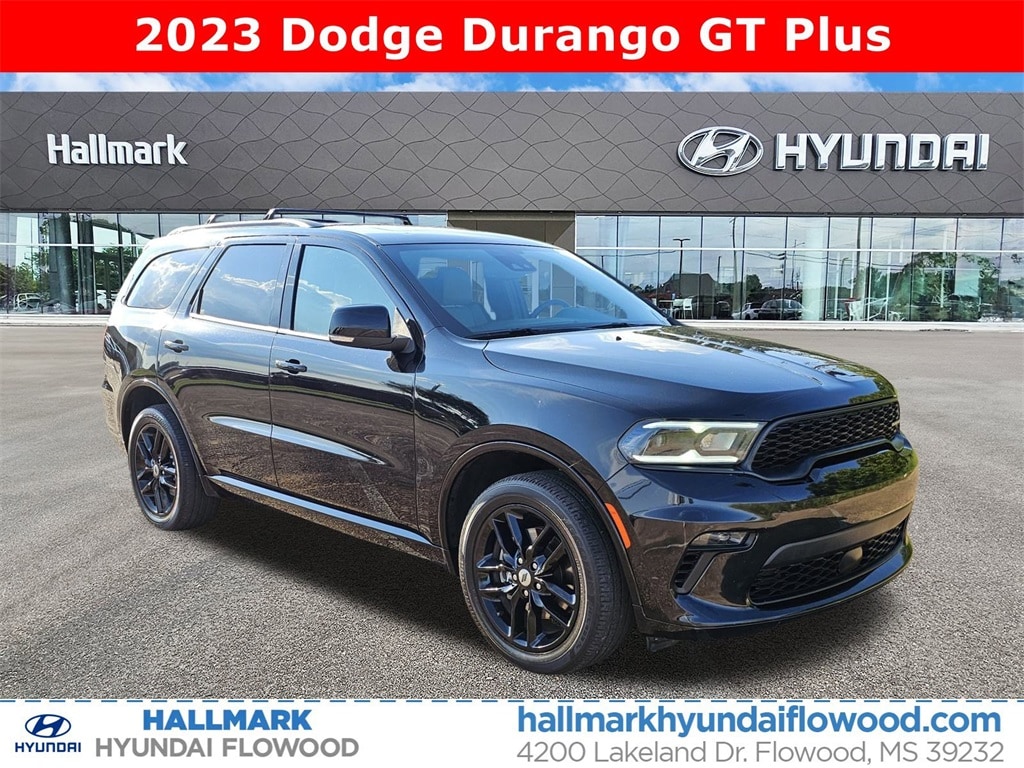 This 2023 Dodge Durango GT Plus in DB Black Crystal Clearcoat features: AWD 1-Year Trial (Registration Required), 10.1" Touchscreen Display, 115V Auxiliary Power Outlet, 180 Amp Alternator, 4G LTE Wi-Fi Hot Spot, 7 & 4 Pin Wiring Harness, Adaptive Cruise Control w/Stop, Apple CarPlay, Apple CarPlay/Android Auto, Auto-Dimming Exterior Driver Mirror, Automatic temperature control, Black Roof Rails, Class IV Receiver Hitch, Connected Travel & Traffic Services, Disassociated Touchscreen Display, Dual Remote USB Port - Charge Only, Exterior Mirrors w/Heating Element, Exterior Mirrors w/Memory, Exterior Mirrors w/Supplemental Signals, Floor Console w/Leather Armrest, Full Speed Forward Collision Warning Plus, Fully automatic headlights, Gloss Black Exterior Mirrors, Google Android Auto, GPS Antenna Input, GPS Navigation, HD Radio, Heated Second Row Seats, Heavy-Duty Engine Cooling, Integrated Center Stack Radio, Integrated Roof Rail Crossbars, Integrated Voice Command w/Bluetooth, Leather Trimmed Bucket Seats, Leather Wrapped Door Panels, LED Auxiliary Low Beam & Turn Signal, Power 6x9 Multi-Function Foldaway Mirrors, Power 8-Way Driver Memory 8-Way Passenger Seats, Power Driver/Passenger 4-Way Lumbar Adjust, Power Liftgate, Power Sunroof, Power Tilt & Telescopic Steering Column, Premium LED Fog Lamps, Quick Order Package 2BG GT Plus, Radio: Uconnect 5 Nav w/10.1" Display, Radio/Driver Seat/Mirrors Memory, Rear Load Leveling Suspension, Red Accent Stitching, SiriusXM Guardian - Included Trial (B), SiriusXM w/360L, Trailer Brake Control, USB Host Flip, Ventilated Front Seats, Wheels: 20" x 8.0" Fine Silver. Clean CARFAX. CARFAX One-Owner. Odometer is 2788 miles below market average!