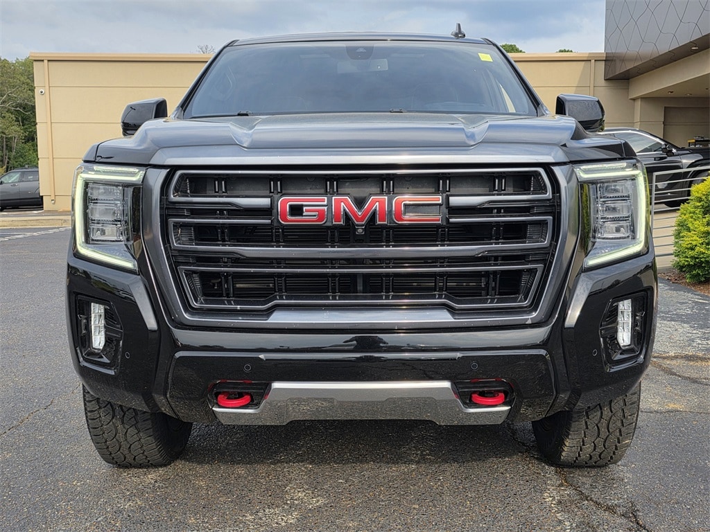 This 2021 GMC Yukon AT4 in Onyx Black features: 12-Way Power Seat Adjusters, 15" Diagonal Multi-Color Head-Up Display, 2 Presets For Outside Rearview Mirrors, 3.23 Rear Axle Ratio, 3rd Row 60/40 Power-Folding Split-Bench Seat, 3rd row seats: split-bench, 4-Wheel Disc Brakes, 9 Speakers, ABS brakes, Adaptive suspension, Air Conditioning, Air Ride Adaptive Suspension, Alloy wheels, AM/FM radio: SiriusXM with 360L, Apple CarPlay/Android Auto, AT4 Premium Plus Package, Auto High-beam Headlights, Auto-dimming door mirrors, Auto-dimming Rear-View mirror, Auto-leveling suspension, Automatic Emergency Braking, Automatic temperature control, Black Roof-Mounted Luggage Rack Side Rails, Bose 9-Speaker Stereo Audio System Feature, Brake assist, Bright Front & Rear Door Sill Plates, Bumpers: body-color, Compass, Delay-off headlights, Driver door bin, Driver vanity mirror, Dual front impact airbags, Dual front side impact airbags, Dual-Pane Panoramic Power Sunroof, Electronic Limited Slip Differential (eLSD), Electronic Stability Control, Emergency communication system: OnStar and GMC connected services capable, Extra Capacity Cooling System, Floor Console, Following Distance Indicator, Forward Collision Alert, Four wheel independent suspension, Front & Rear Park Assist, Front anti-roll bar, Front Bucket Seats, Front Center Armrest, Front dual zone A/C, Front fog lights, Front High-Approach Angle Fascia, Front Pedestrian Braking, Front reading lights, Fully automatic headlights, Garage door transmitter, Hands-Free Power Programmable Rear Liftgate, HD Radio, HD Surround Vision, Heated & Ventilated Driver & Front Passenger Seats, Heated 2nd Row Outboard Position Seats, Heated Automatic Steering Wheel, Heated door mirrors, Heated Driver & Front Passenger Seats, Heated front seats, Heated rear seats, Heated steering wheel, Heavy-Duty Air Filter, Hill Descent Control, Hitch Guidance w/Hitch View, Illuminated entry, In-Vehicle Trailering App, Inside Rear-View Auto-Dimming Mirror, Integrated Trailer Brake Controller, IntelliBeam Automatic High Beam On/Off, Lane Change Alert w/Side Blind Zone Alert, Lane Keep Assist w/Lane Departure Warning, Leather steering wheel, Low tire pressure warning, Magnetic Ride Control Suspension, Max Trailering Package, Memory seat, Occupant sensing airbag, Outside Heated Power-Adjustable Mirrors, Outside temperature display, Overhead airbag, Overhead console, Panic alarm, Passenger door bin, Passenger vanity mirror, Perforated Leather Seating Surfaces, Power door mirrors, Power driver seat, Power Liftgate, Power passenger seat, Power Release 2nd Row 60/40 Split-Folding Bench Seat, Power Release 2nd Row Bucket Seats, Power steering, Power Tilt & Telescopic Steering Column, Power windows, Power-Retractable Assist Steps, Preferred Equipment Group 4SB, Premium Capability Package w/Active Response 4WD, Radio: AM/FM/SiriusXM, Radio: AM/FM/SiriusXM w/Navigation, Rain sensing wipers, Rear air conditioning, Rear anti-roll bar, Rear Cross Traffic Alert, Rear Media & Nav Package, Rear Pedestrian Alert, Rear reading lights, Rear seat center armrest, Rear Seat Media System, Rear window defroster, Rear window wiper, Red Horizontal-Mounted Recovery Hooks, Remote keyless entry, Roof rack: rails only, Safety Alert Seat, Security system, SiriusXM w/360L, Speed control, Speed-sensing steering, Split folding rear seat, Spoiler, Steering wheel memory, Steering wheel mounted audio controls, Tachometer, Technology Package, Telescoping steering wheel, Tilt steering wheel, Traction control, Trailer Side Blind Zone Alert, Trip computer, Turn signal indicator mirrors, Universal Home Remote, Variably intermittent wipers, Ventilated front seats, Voltmeter, Wheel Locks, Wheels: 20" x 9" 6-Spoke Machined Aluminum.