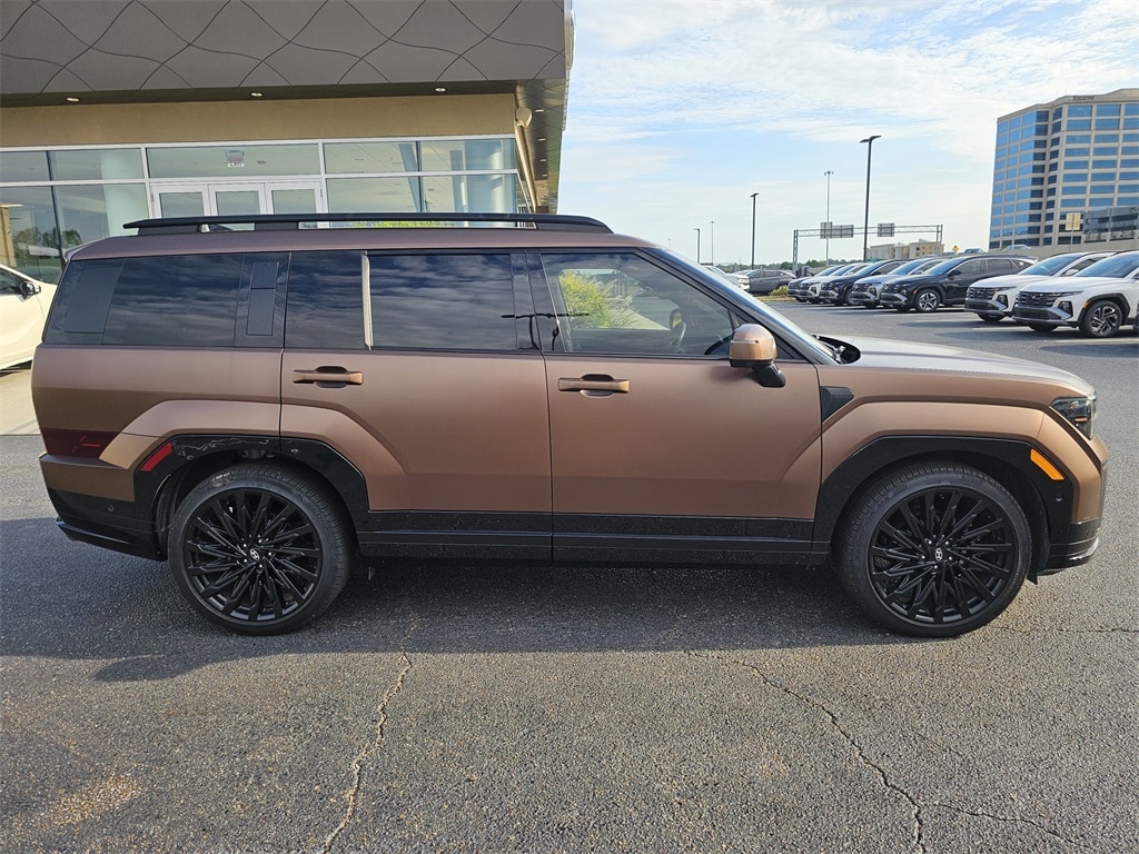 This 2024 Hyundai Santa Fe Calligraphy in Earthy Brass Matte features: 12 Speakers, 3rd row seats: bench, 4-Wheel Disc Brakes, ABS brakes, Air Conditioning, All Season Fitted Liners, Alloy wheels, AM/FM radio: SiriusXM, Apple CarPlay & Android Auto, Auto High-beam Headlights, Auto-dimming Rear-View mirror, Automatic temperature control, Axle Ratio: 3.316, Brake assist, Bumpers: body-color, Carpeted Floor Mats, Delay-off headlights, Driver door bin, Driver vanity mirror, Dual front impact airbags, Dual front side impact airbags, Electronic Stability Control, Emergency communication system, Exterior Parking Camera Rear, First Aid Kit, Four wheel independent suspension, Front anti-roll bar, Front Bucket Seats, Front Center Armrest, Front dual zone A/C, Front reading lights, Fully automatic headlights, Garage door transmitter: HomeLink, Heads-Up Display, Heated & Ventilated Front Bucket Seats, Heated door mirrors, Heated front seats, Heated rear seats, Heated steering wheel, Illuminated entry, Knee airbag, Leather steering wheel, Low tire pressure warning, Memory seat, Navigation System, Occupant sensing airbag, Option Group 01, Outside temperature display, Overhead airbag, Overhead console, Panic alarm, Passenger door bin, Passenger vanity mirror, Power door mirrors, Power driver seat, Power Liftgate, Power moonroof, Power passenger seat, Power steering, Power windows, Quilted Premium Nappa Leather Seat Trim, Radio: AM/FM/HD Bose Premium Audio System, Rain sensing wipers, Rear anti-roll bar, Rear side impact airbag, Rear window defroster, Rear window wiper, Remote keyless entry, Security system, Speed control, Speed-sensing steering, Split folding rear seat, Spoiler, Steering wheel mounted audio controls, Tachometer, Telescoping steering wheel, Tilt steering wheel, Traction control, Trip computer, Turn signal indicator mirrors, Variably intermittent wipers, Ventilated front seats, Wheels: 21" x 8.5J Unique Dark Finish Alloy.