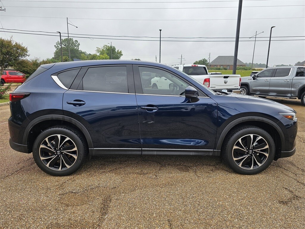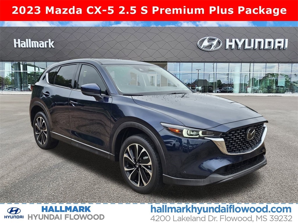 This 2023 Mazda CX-5 2.5 S Premium Plus Package in Deep Crystal Blue Mica features: AWD 4.624 Axle Ratio, AppLink/Apple CarPlay and Android Auto, Automatic temperature control, Heated front seats, Heated rear seats, Leather Seat Trim, Radio Broadcast Data System Program Information, Rain sensing wipers, SMS Text Msg Audio Delivery & Reply, Spoiler, Wheels: 19" x 7J Aluminum Alloy. Clean CARFAX. CARFAX One-Owner.