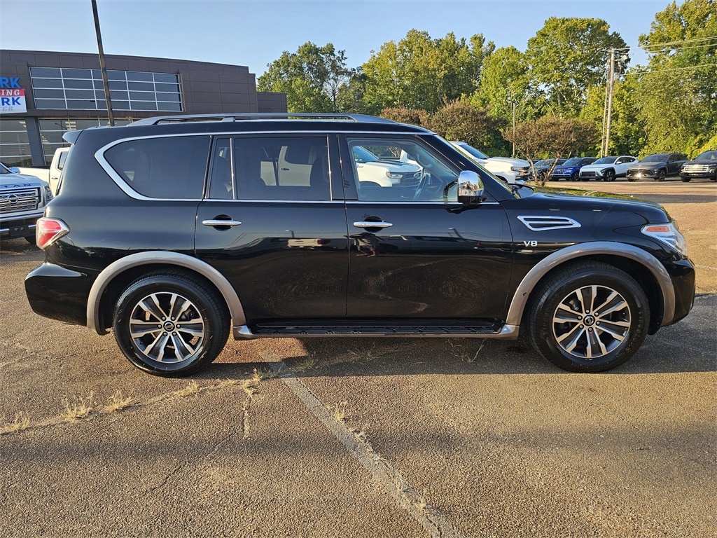 This 2020 Nissan Armada SL in Super Black features: RWD 20" Painted Alloy Wheels, 3rd Row Carpeted Floor Mats - Bench Seat, 3rd row seats: split-bench, Automatic temperature control, Fully automatic headlights, Navigation System, Power Liftgate, Radio: AM/FM/SXM/CD/MP3/HD. Clean CARFAX.